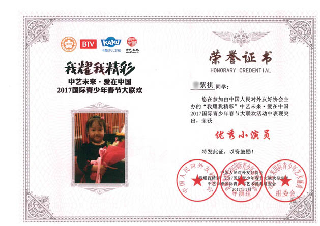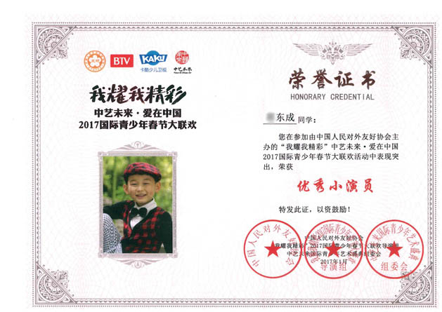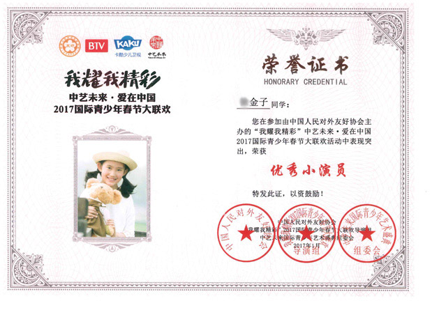 在BTV我耀我精彩 中艺未来﹒爱在中国2017国际青少年春大联欢评选活动中,东方金子塔算盘舞《算盘小先生》的小演员们由于表现突出,荣获“优秀小演员”荣誉称号,其中四位小演员还被评为“公益之星”、“公益好少年”,舞蹈编舞者及指导老师易成龙老师荣获“优秀指导教师”荣誉称号,东方金子塔荣获“优秀组织机构”荣誉称号。